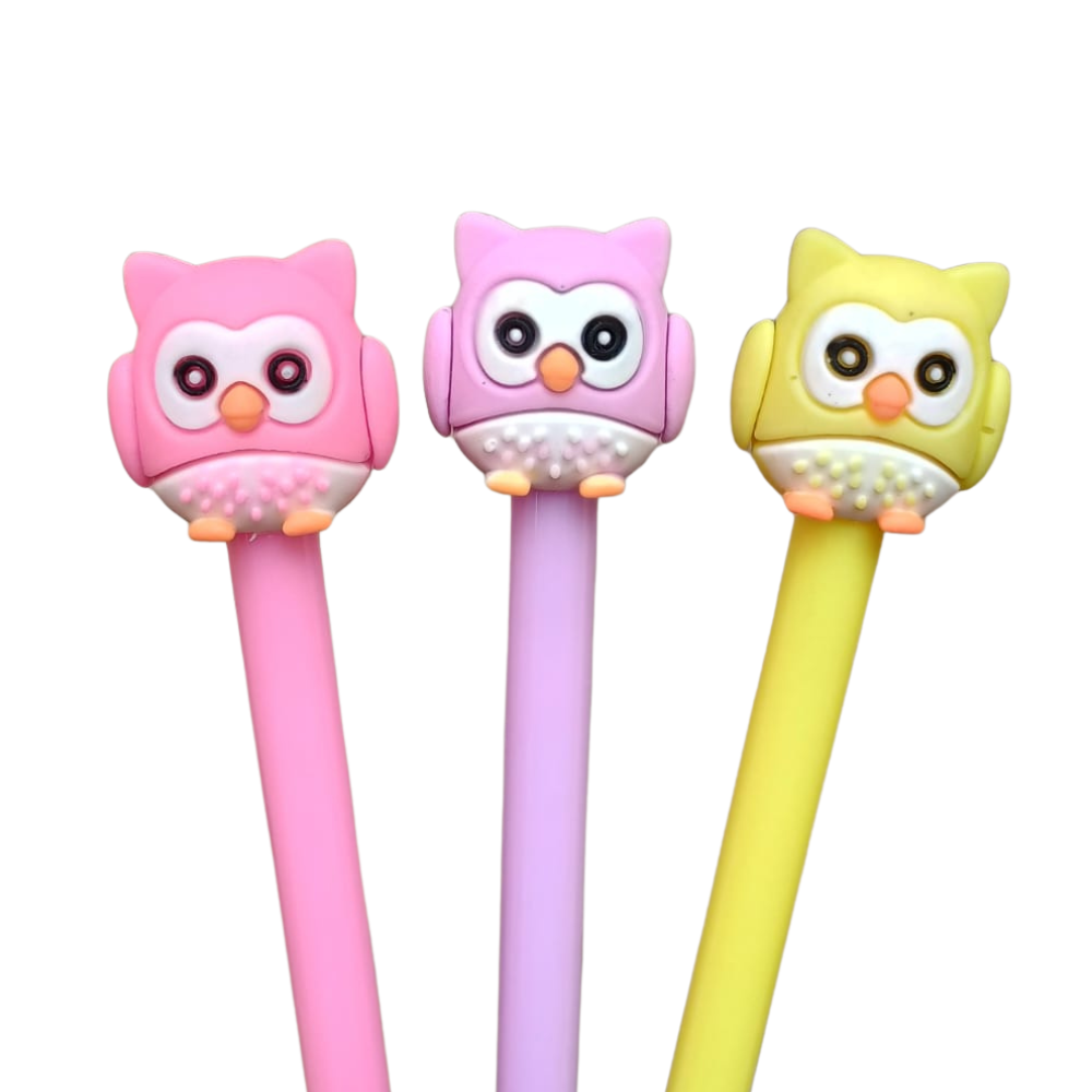 Caneta Coruja Super Fofa para deixar seu espaço de estudo mais bonito. Os modelos de Canetas Coruja possuem cores vibrantes e uma ponta de 0.5mm que permite uma escrita macia com cor preta em tinha gel. .