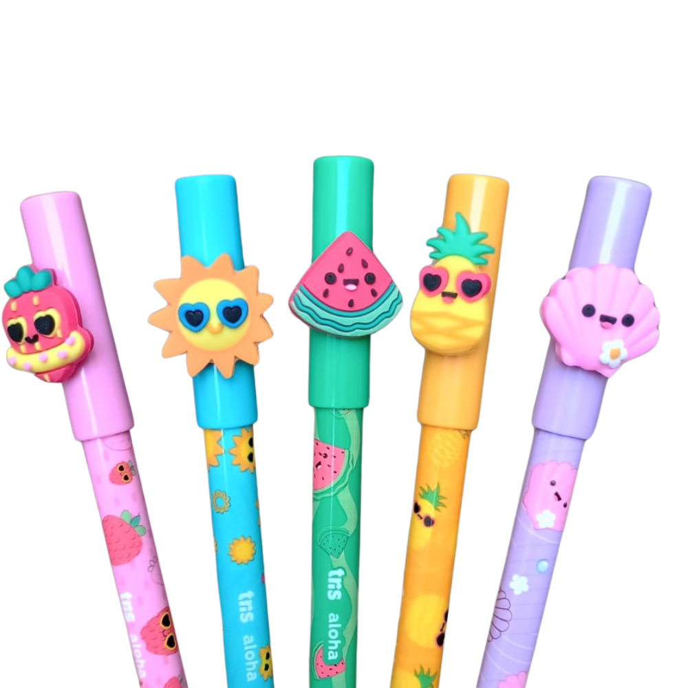 Tipo: Caneta Esferográfica; Ponta: 1.0mm; Tinta: Azul; Características: Topper aloha fofíssimo; Ponta média; Corpo decorado.