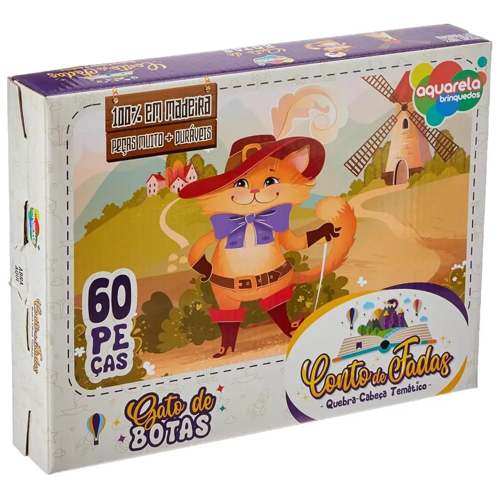 Quebra-Cabeça de Madeira Coleção Conto de Fadas Gato de Botas 60 peças - Aquarela